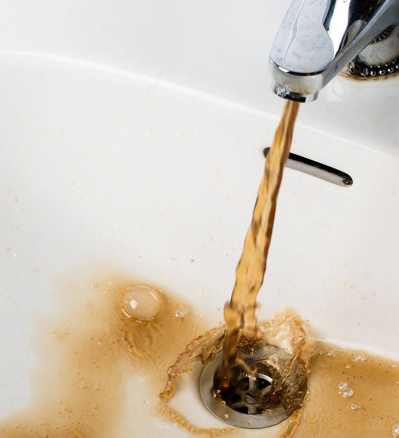 Rust and debris come from aging pipes that break down and release particles into the water supply.