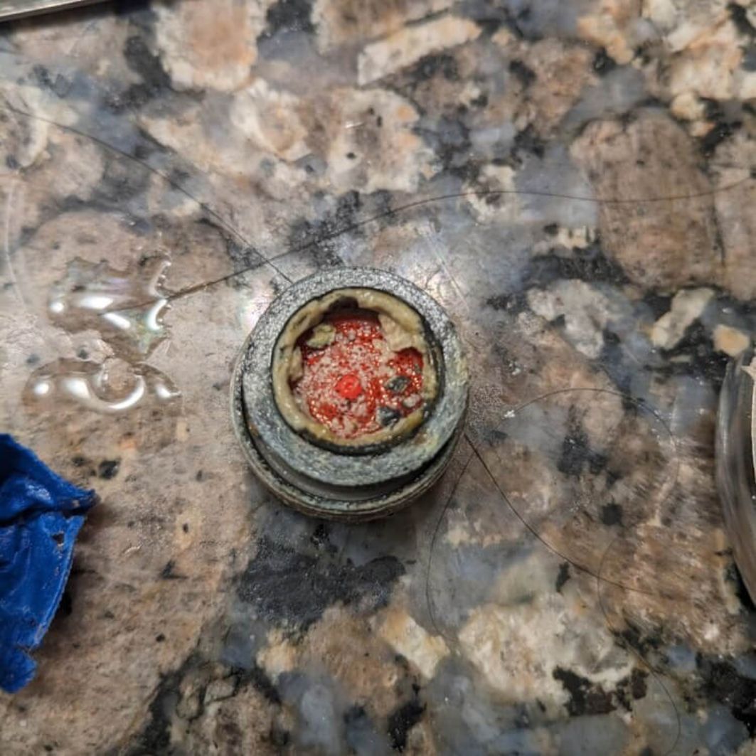 Rust and debris come from aging pipes that break down and release particles into the water supply.