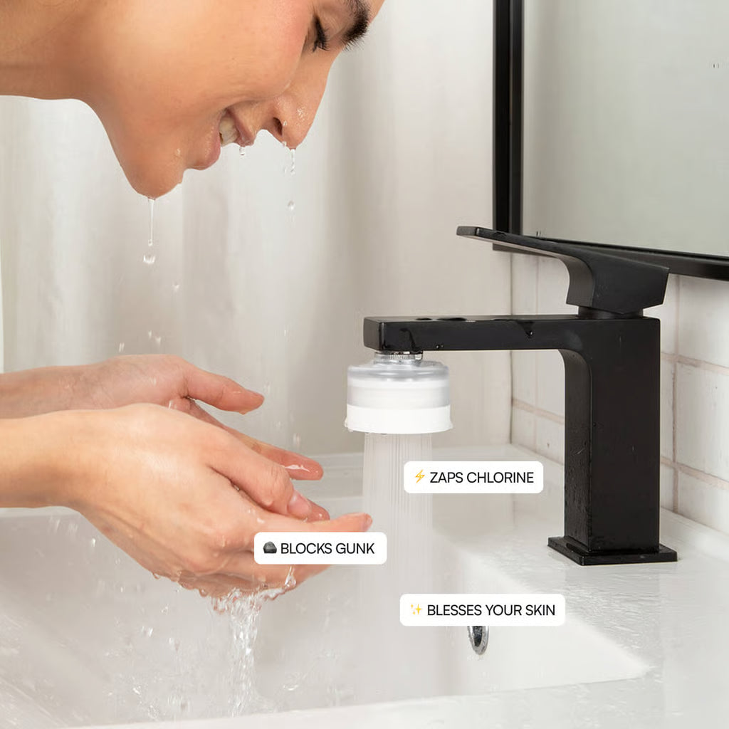 Chlorine, heavy metals and other impurities in your sink water accumulate with every wash, clogging the pores by up to 8% while disrupting the skin barrier. The result? dry and irritated skin.