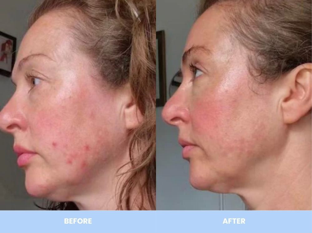 "I struggled with constant flare-ups. After 1 month, my redness is almost gone and my skin feels healthier."